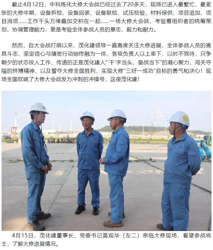 “干”字當(dāng)頭 奮戰(zhàn)當(dāng)下——走馬2024年中科煉化裝置大修改造大會戰(zhàn)現(xiàn)場(三)
