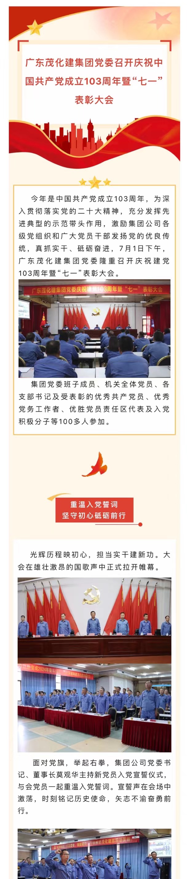 廣東茂化建集團黨委召開慶祝中國共產(chǎn)黨成立103周年暨“七一”表彰大會