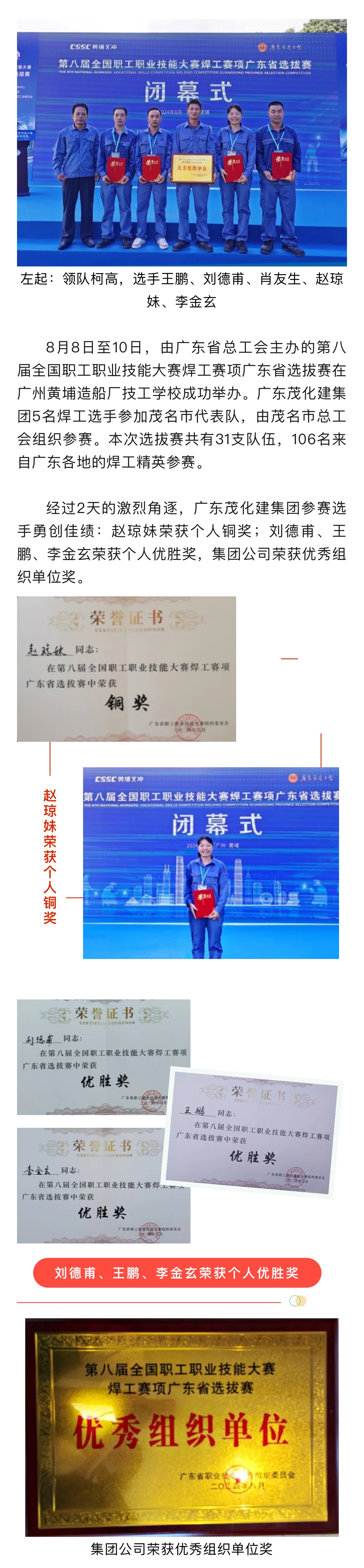 集團(tuán)公司參加第八屆全國(guó)職工職業(yè)技能大賽焊工項(xiàng)廣東省選拔賽創(chuàng)佳績(jī)