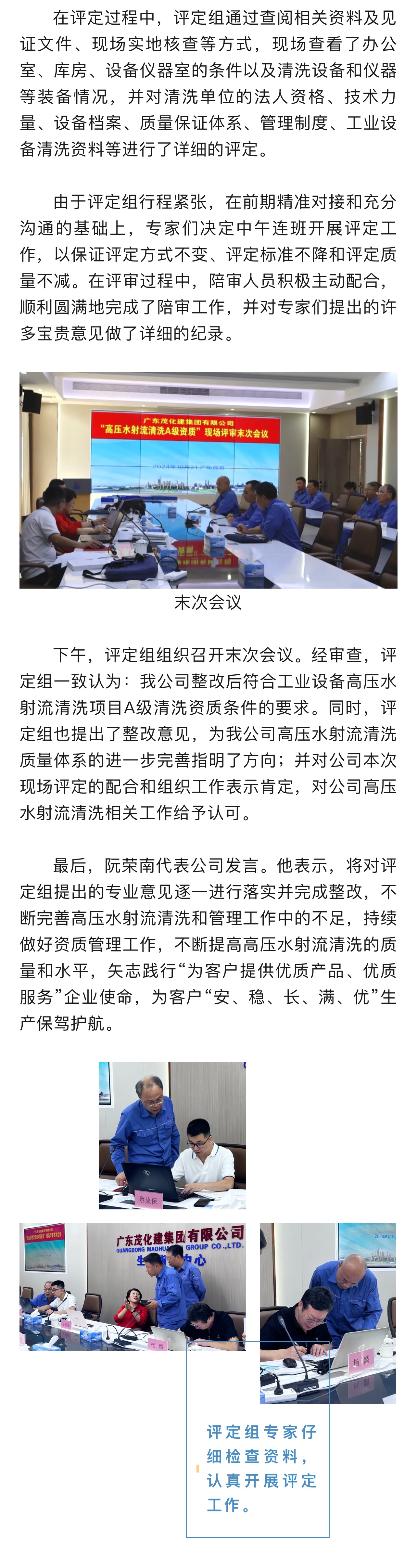集團公司順利完成工業(yè)設(shè)備高壓水射流清洗A級清洗資質(zhì)現(xiàn)場評定